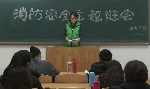 消防安全是生命安全的重要保障,更是和谐校园的重要条件。为增强大家的消防安全意识和能力,qy球友会2015年11月15日晚于9教512举行了消防安全主题班会,本次班会,张恬恬老师从以下几个方面做了指导: