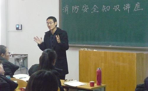 为了进一步提高大学生消防与法制安全意识,qy球友会于2015年11月25日上午在9号教学楼512教室开展了消防与法制安全的专题讲座,特邀保卫处李文胜老师主讲。